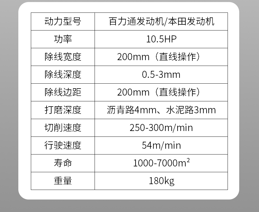 特點(diǎn):體積小、重量輕、機(jī)動(dòng)靈活、工作效率高、操作簡(jiǎn)單。 適應(yīng)范圍:主要用于瀝青道路、混凝土道路、物業(yè)小區(qū)、機(jī)場(chǎng)、停車場(chǎng)等地的標(biāo)線清除。