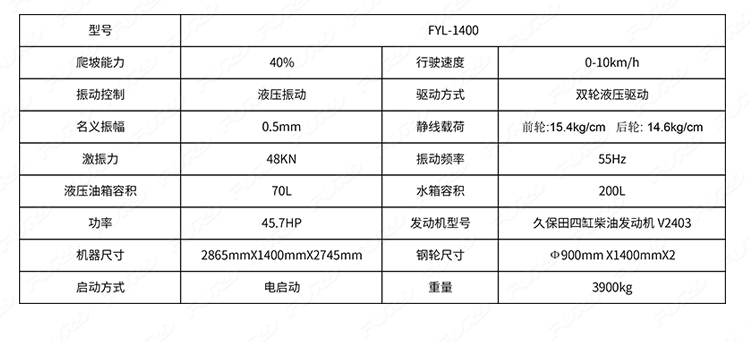 FYL-1400是4噸振動壓路機,采用全液壓傳動,雙鼓液壓驅動,液壓轉向和液壓振動。雙鼓振動壓路機